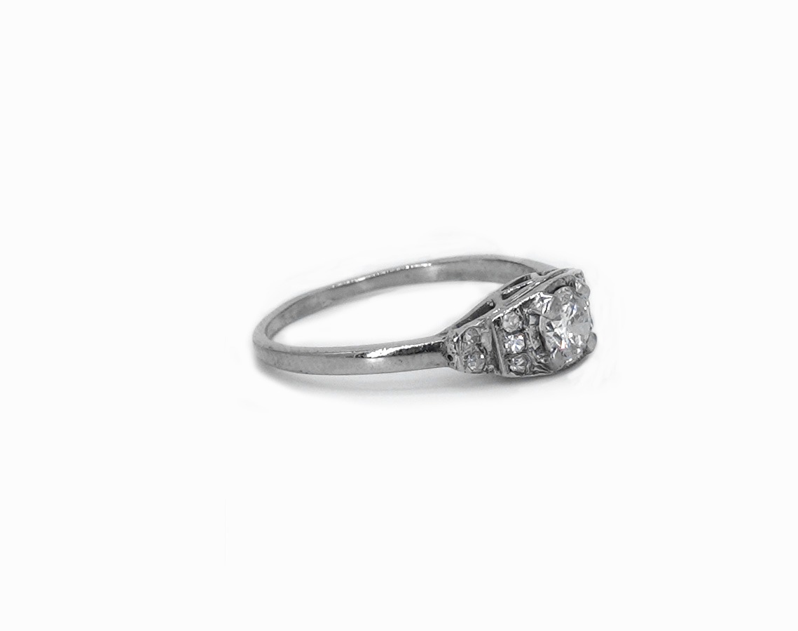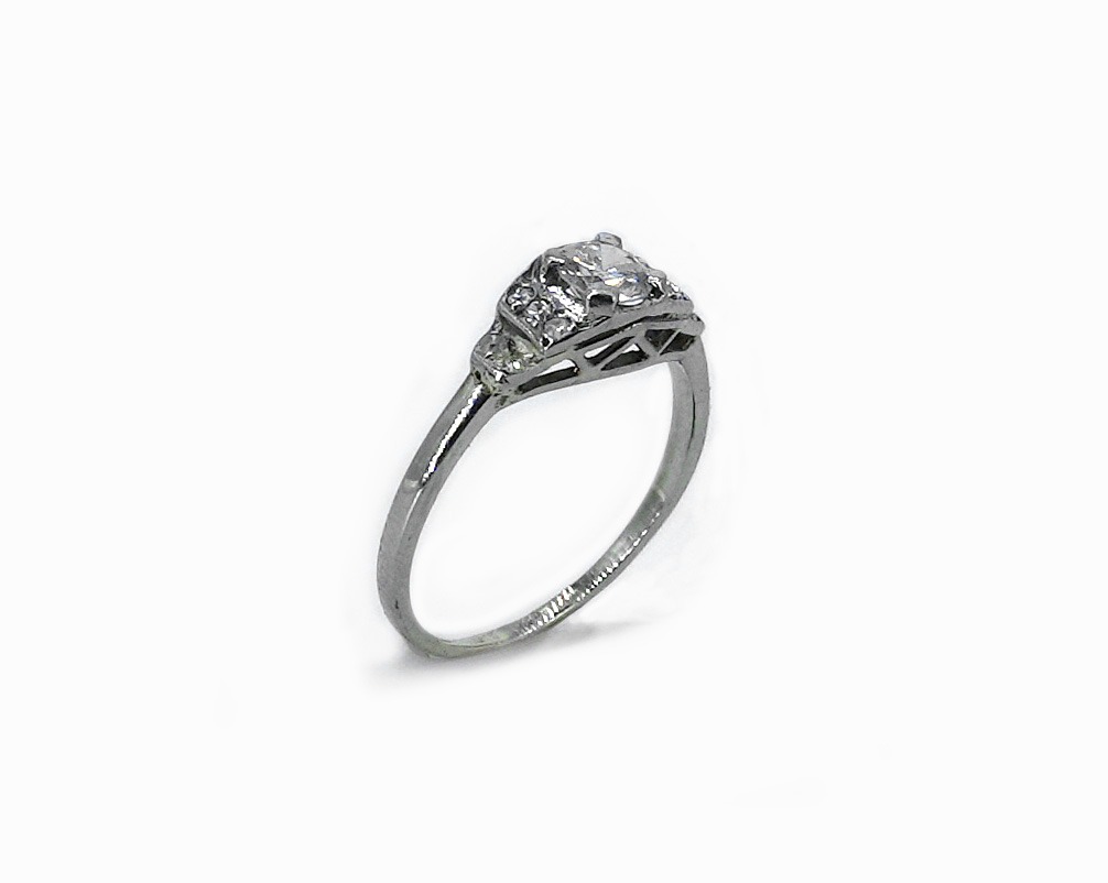 Jolie bague fine de l’époque Art Déco en or blanc 18 carat et diamants.
