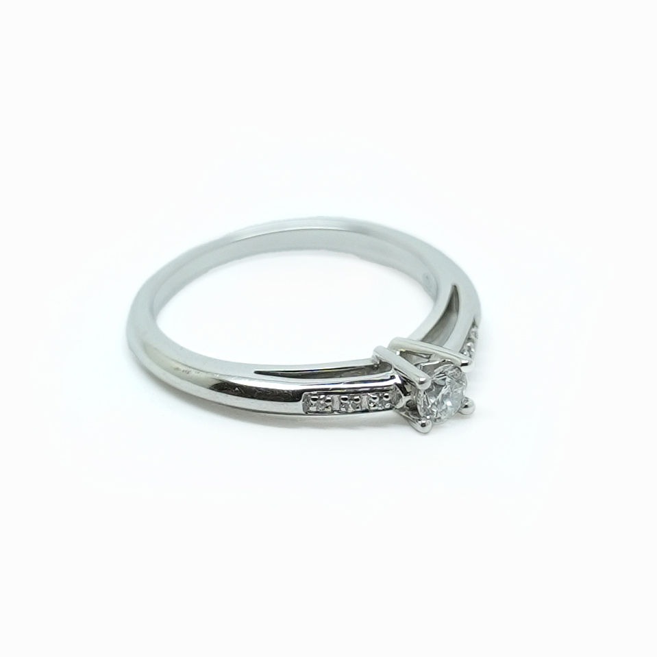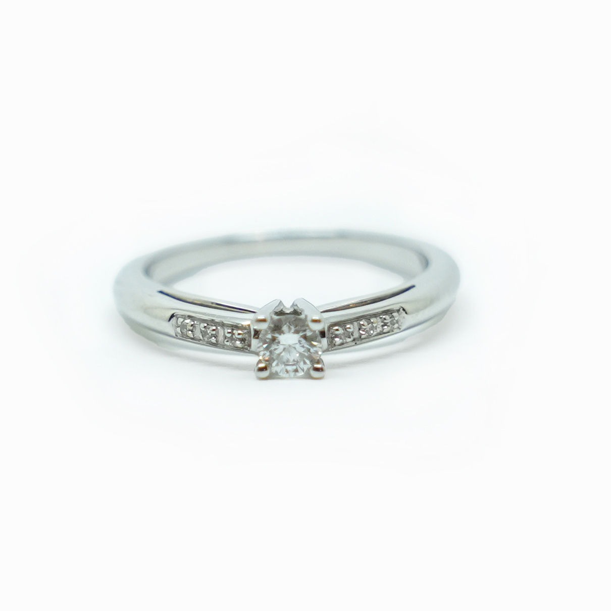 Un diamant central serti dans quatre griffes, et un corps de bague orné de diamants.