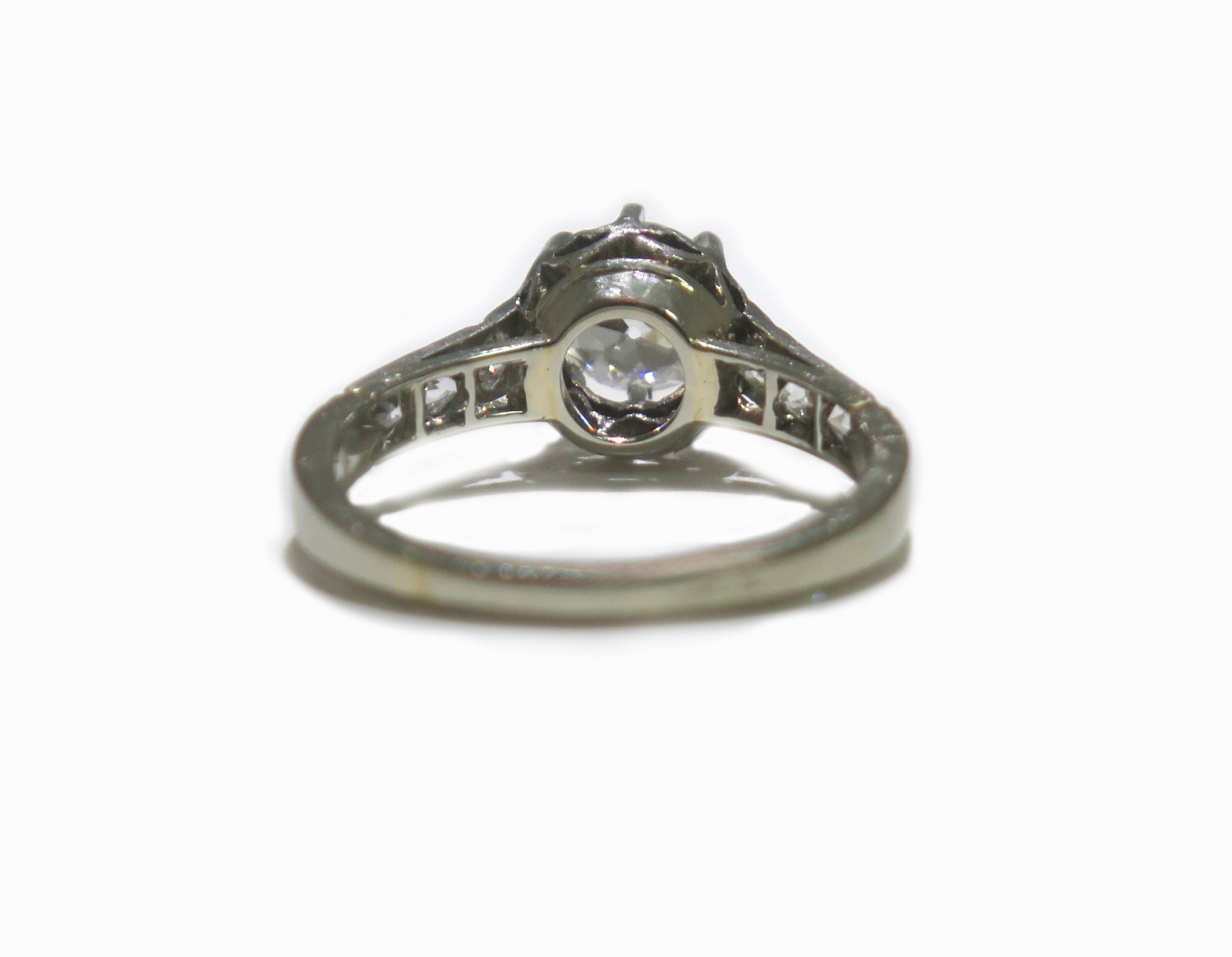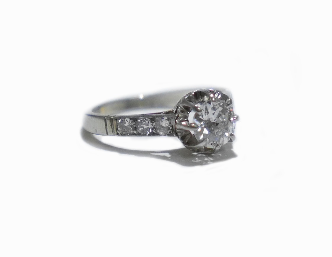Ravissant solitaire en or blanc 18 carat et platine, cette bague ancienne est la bague de fiançailles classique et intemporelle.