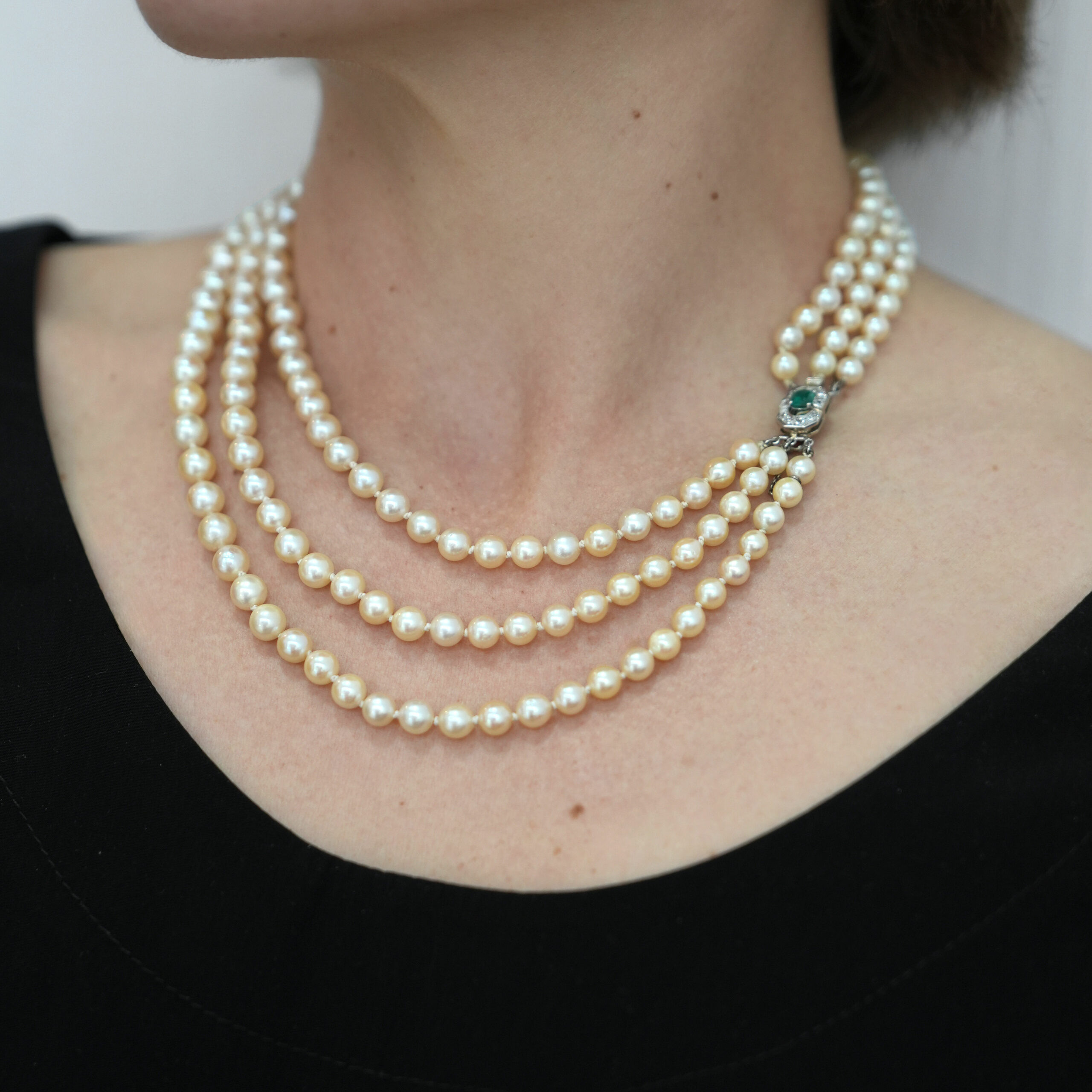 Magnifique collier de perles, trois rangs.