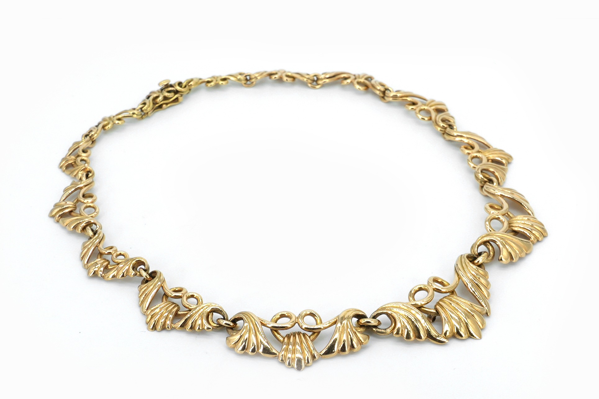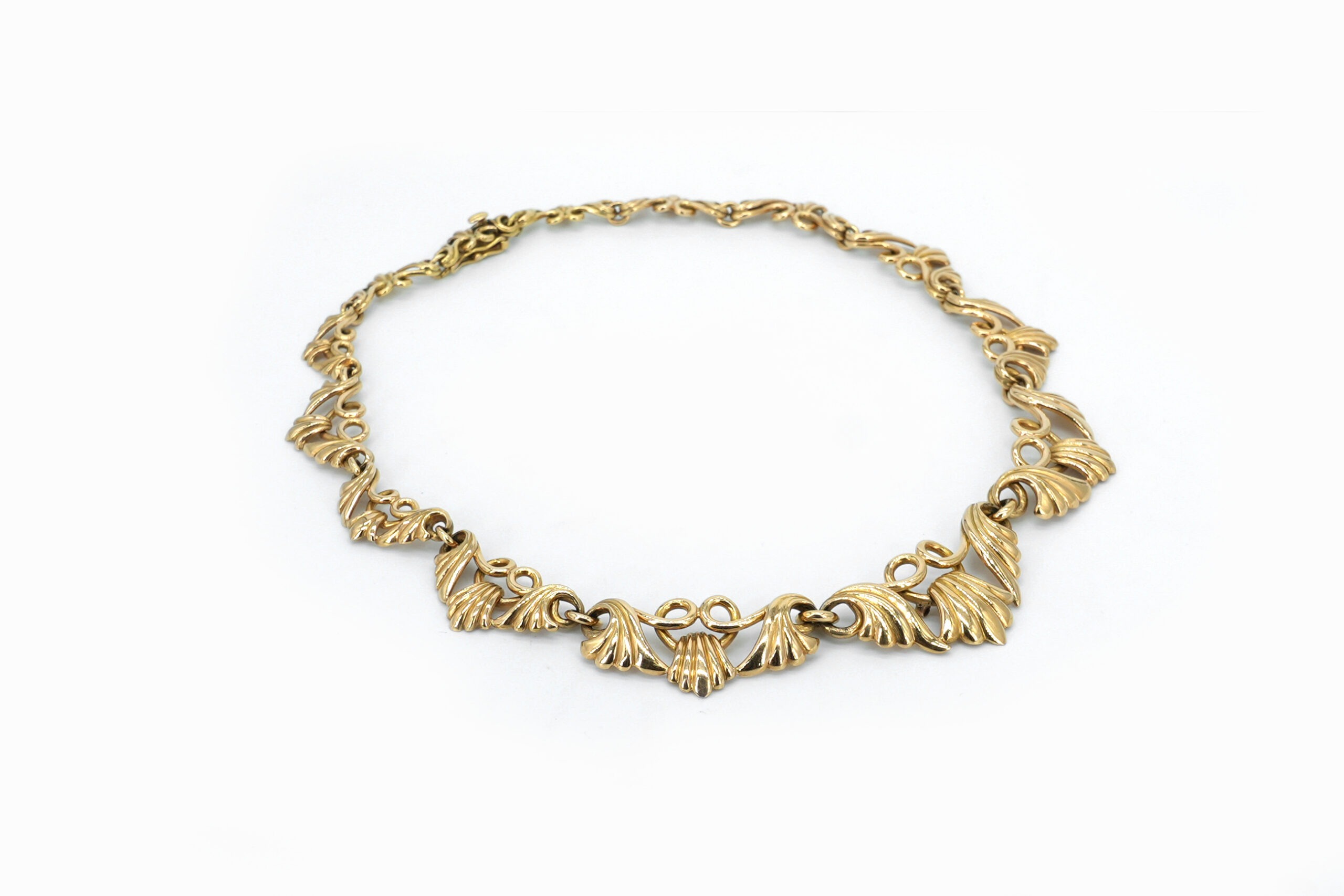 Ravissant collier ancien des années 1940 en or 18 carats, au design raffiné et intemporel.