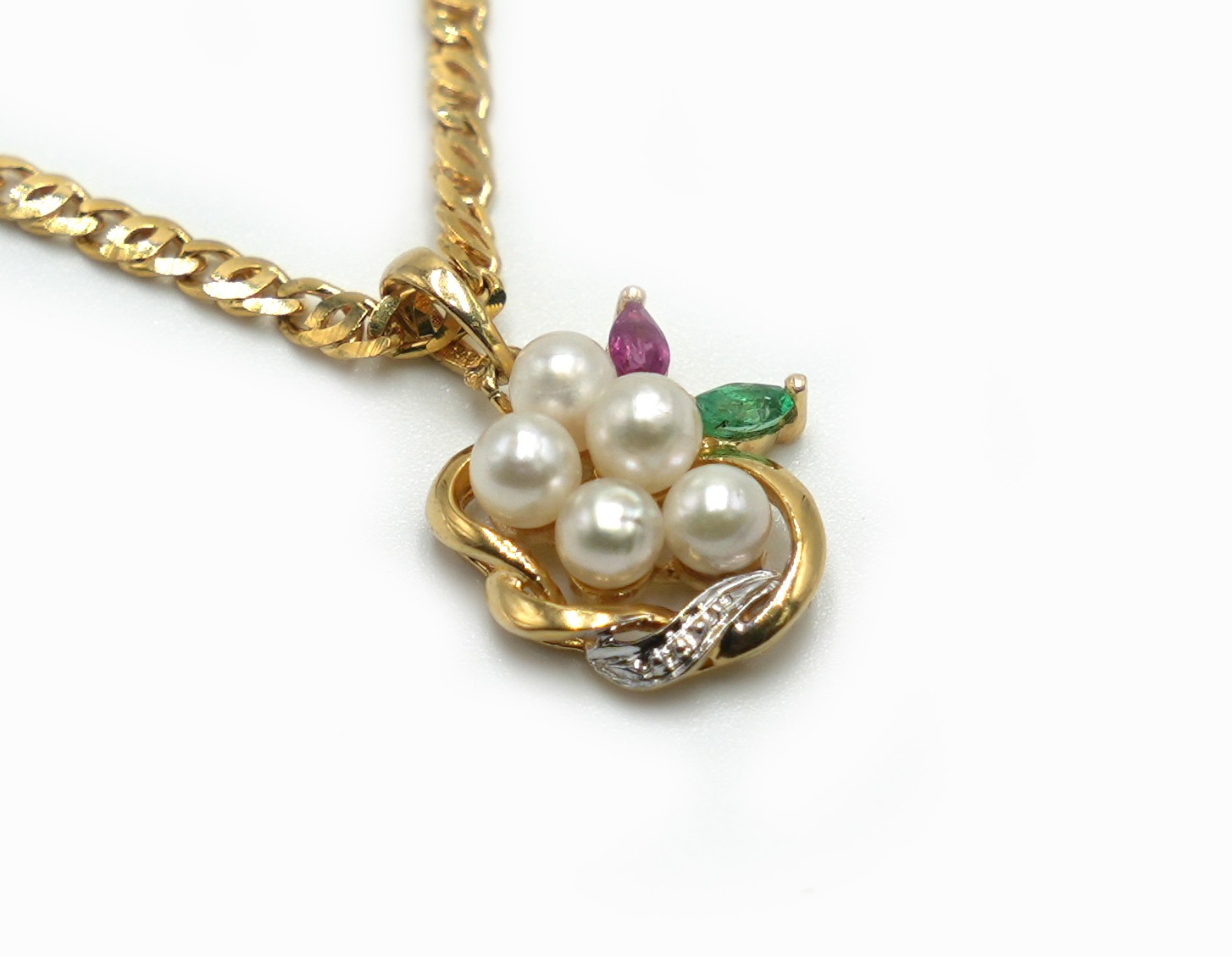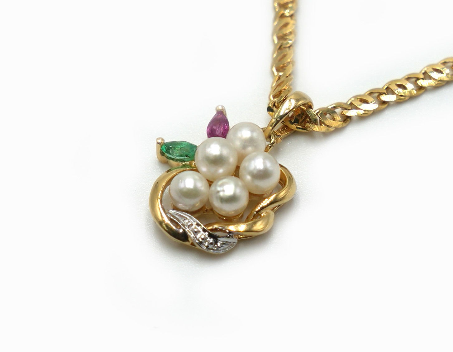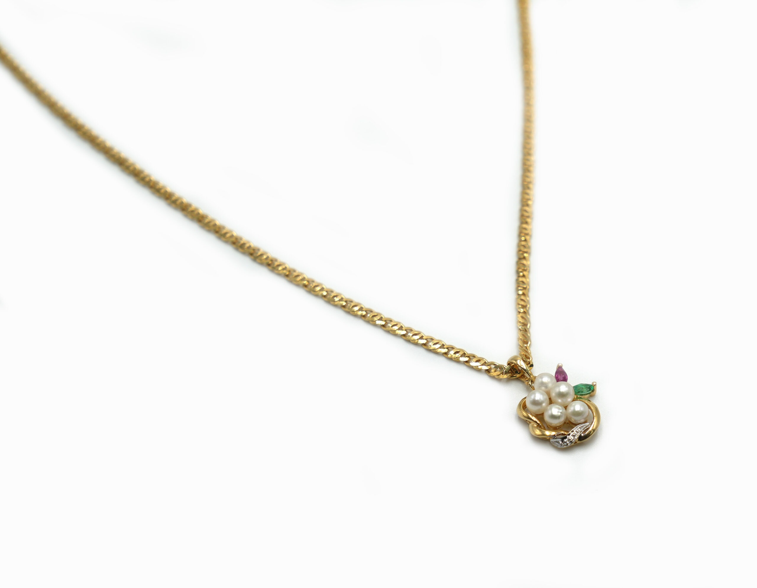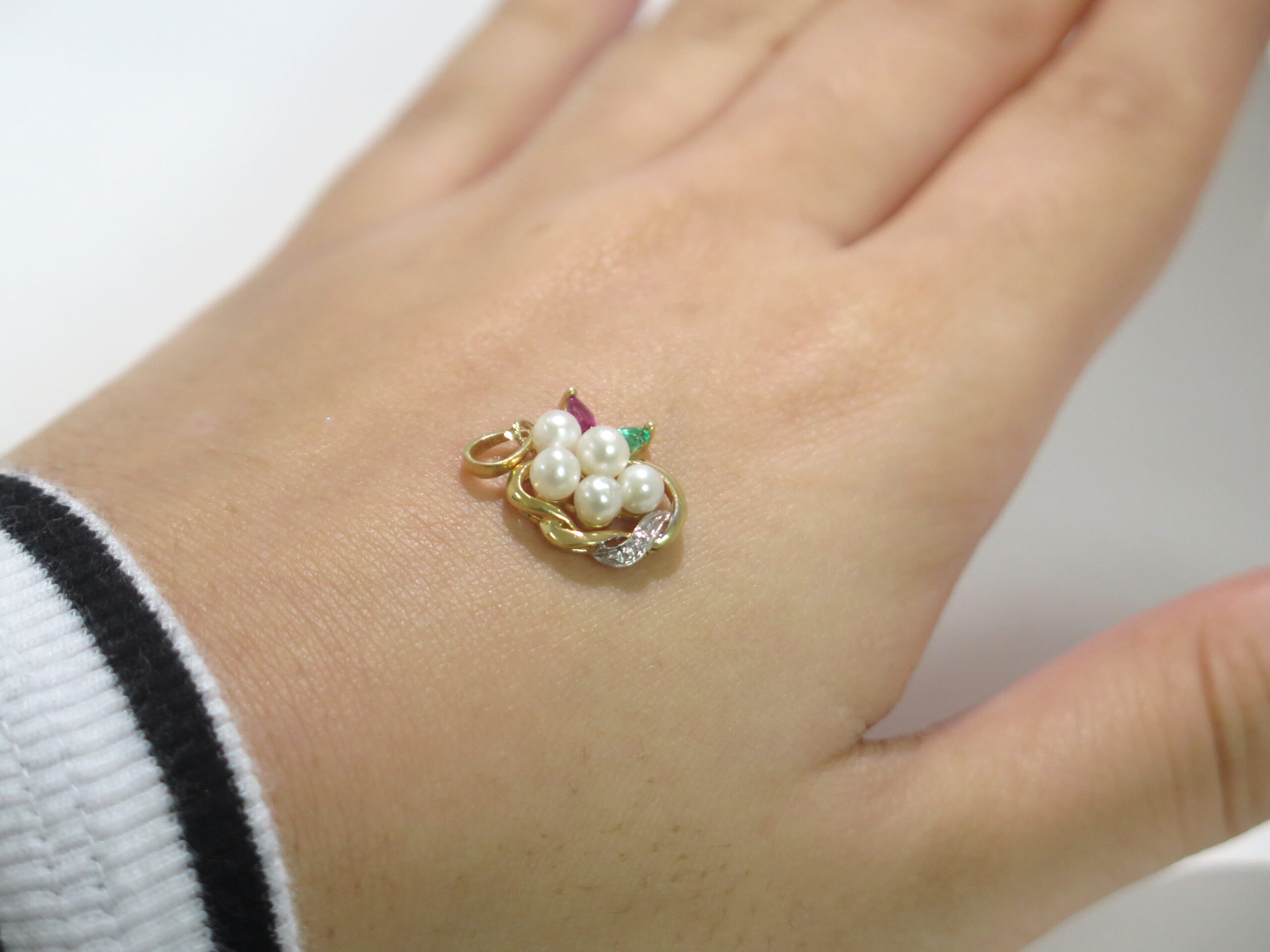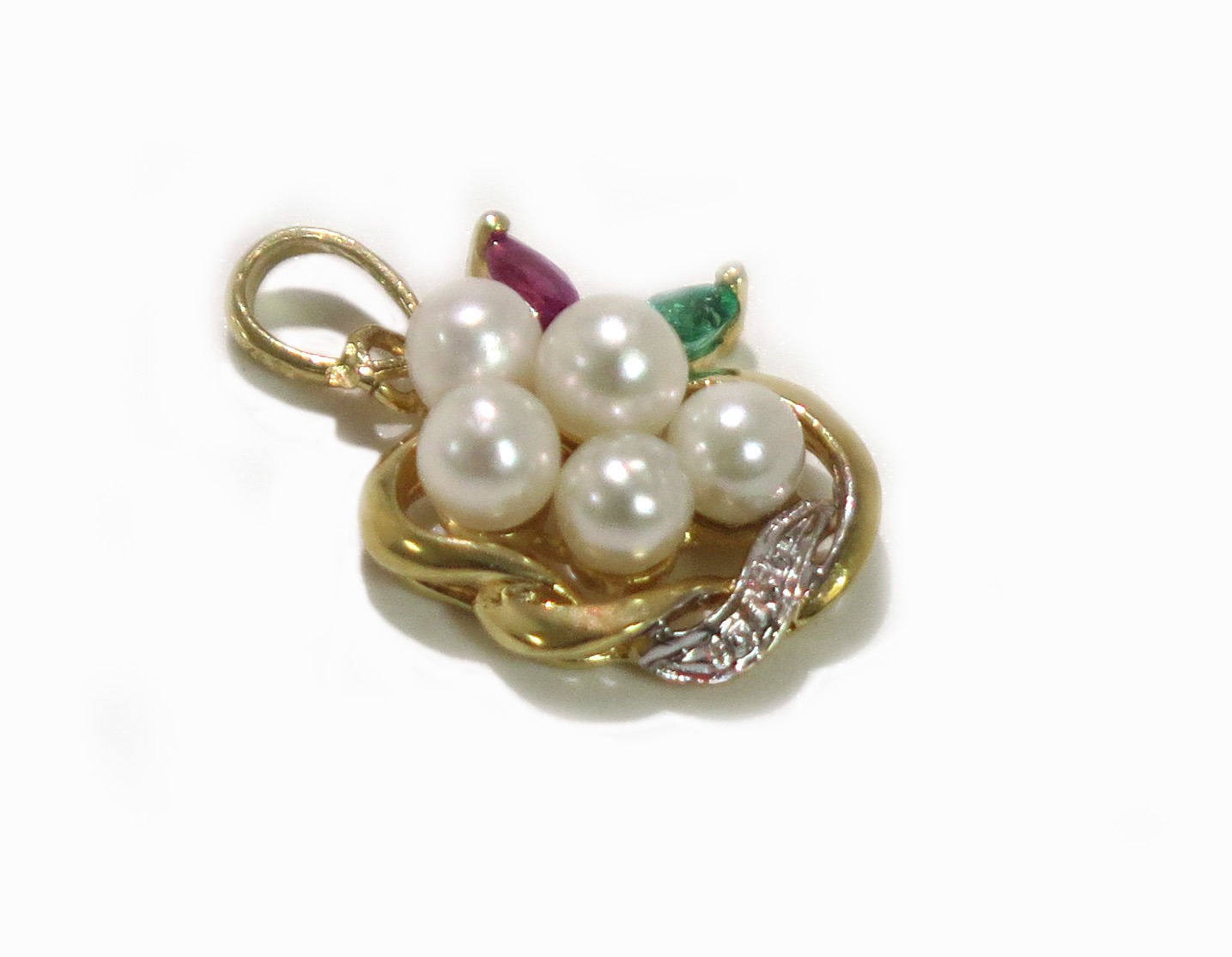 Il est orné de perles d’eau douce, d’une émeraude et d’un rubis, harmonieusement disposés pour créer une pièce élégante, précieuse et pleine de caractère.