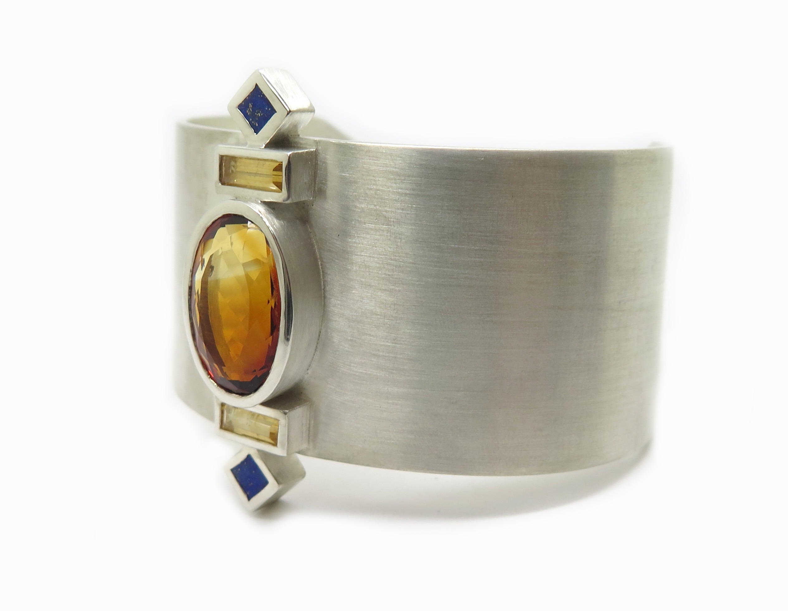 • Gemmes : Citrine bicolore, citrines et lapis lazulis.