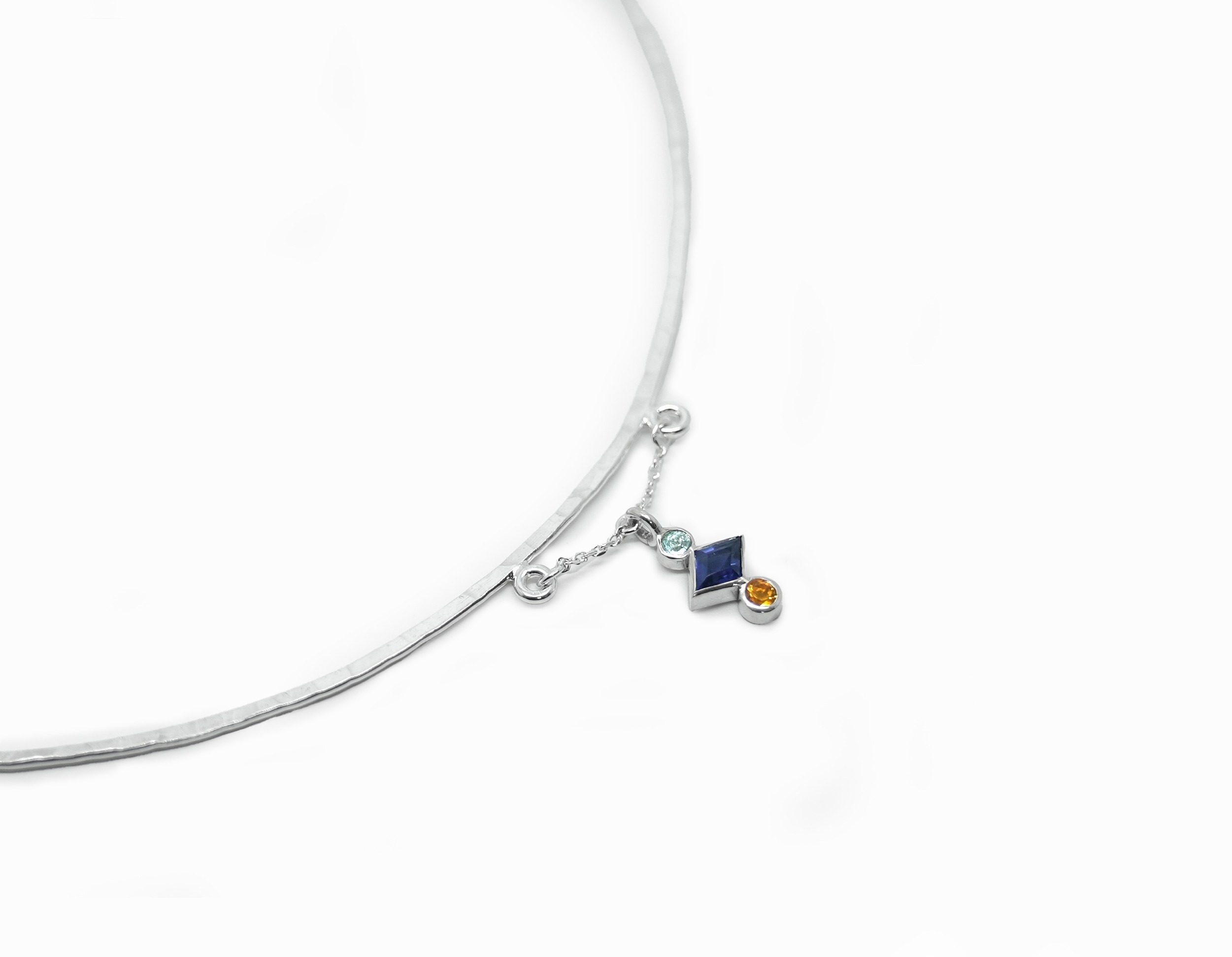 Argent 925/1000. Environ 8 grammes. Gemmes : Aigue marine, cordiérite et citrine.