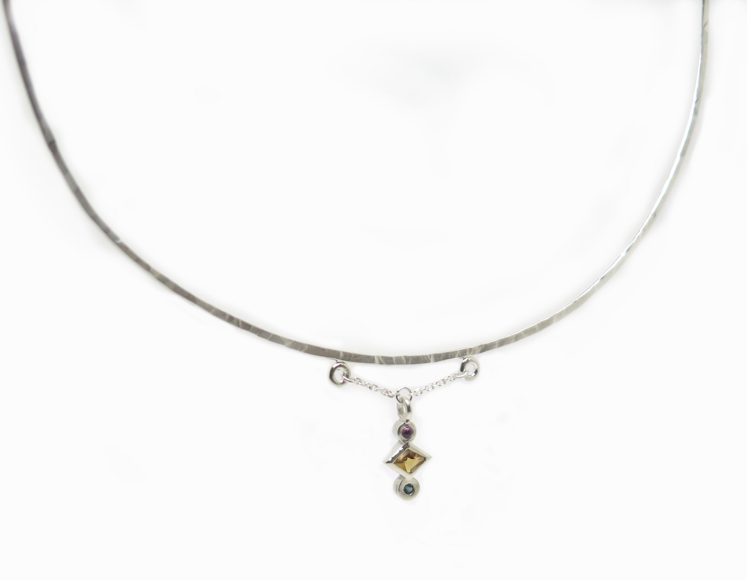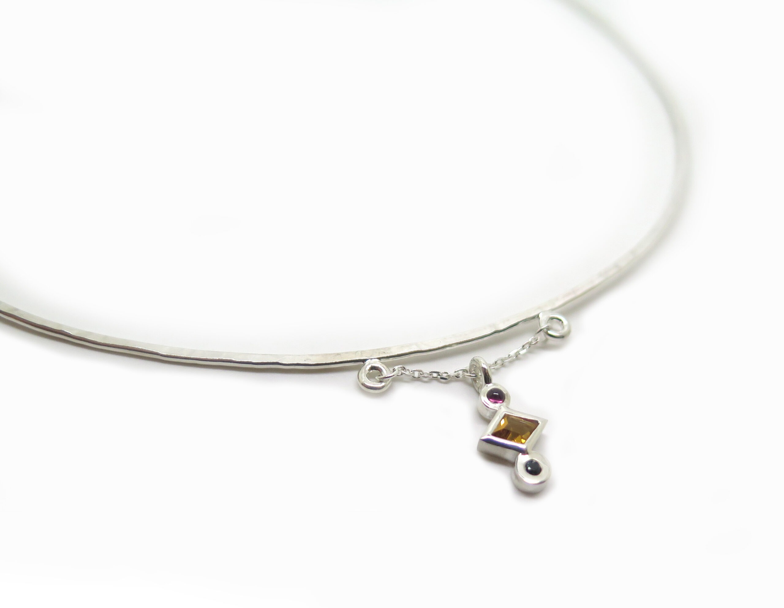 Ce collier en argent allie élégance et raffinement grâce à la combinaison de grenat, citrine et tourmaline, trois pierres naturelles soigneusement sélectionnées.