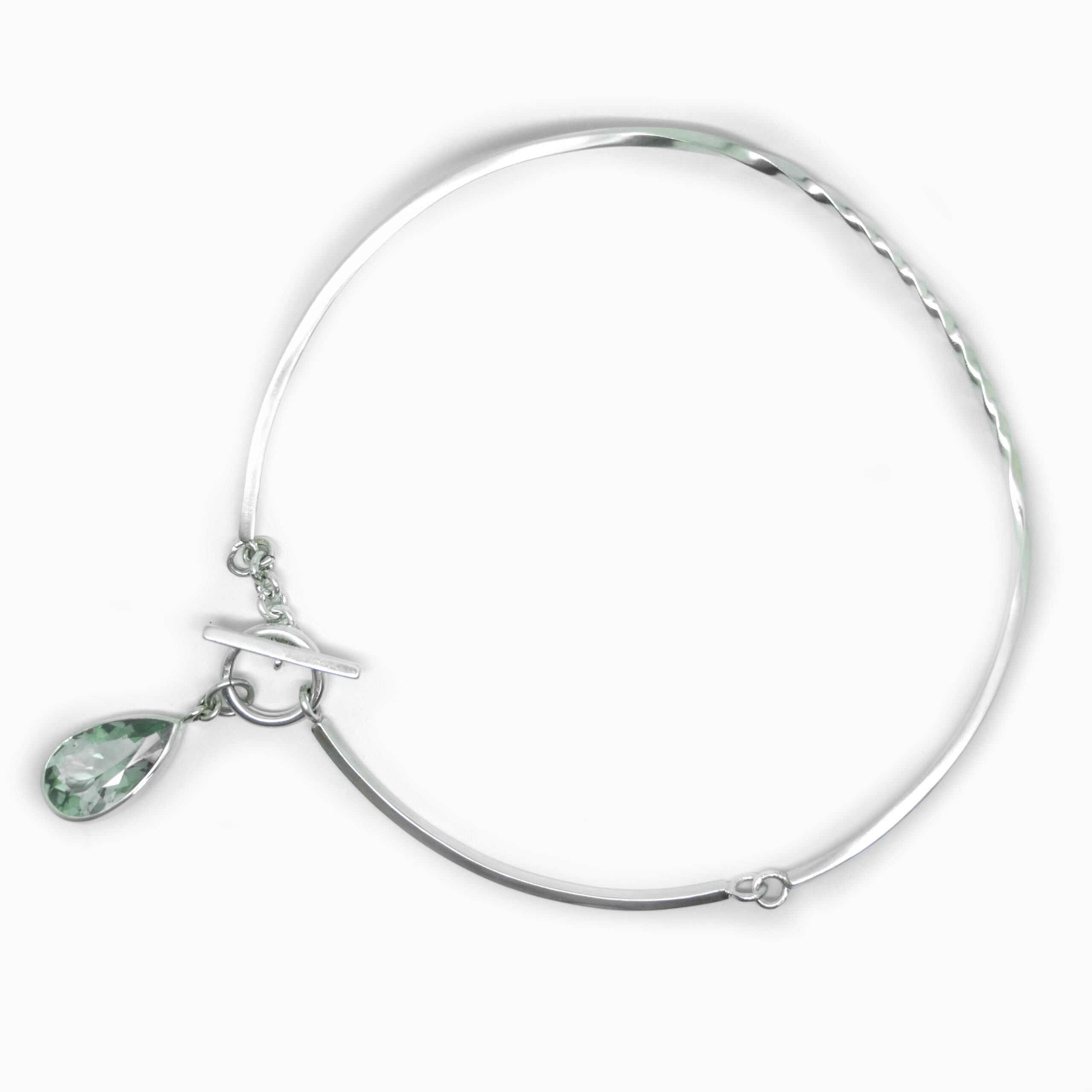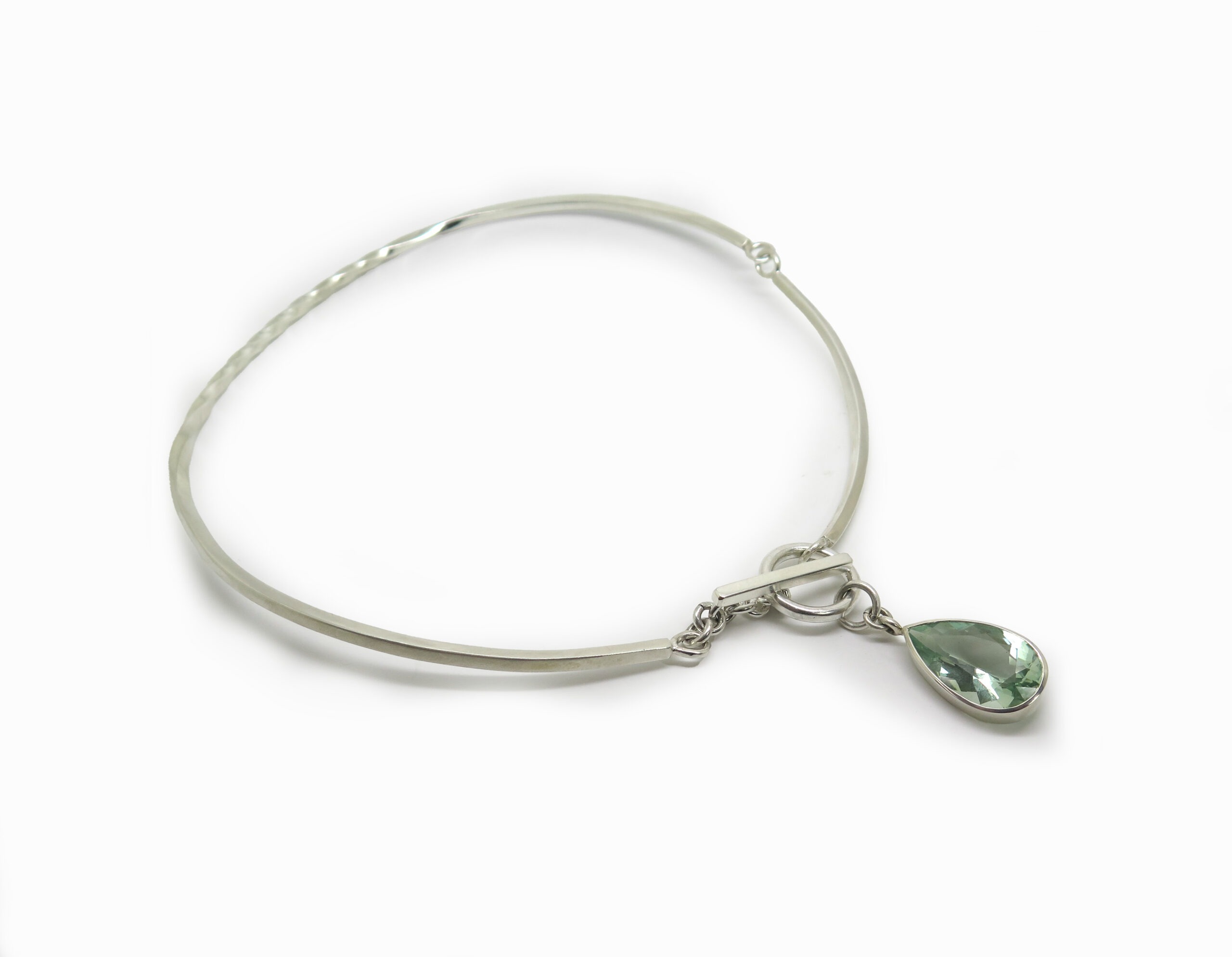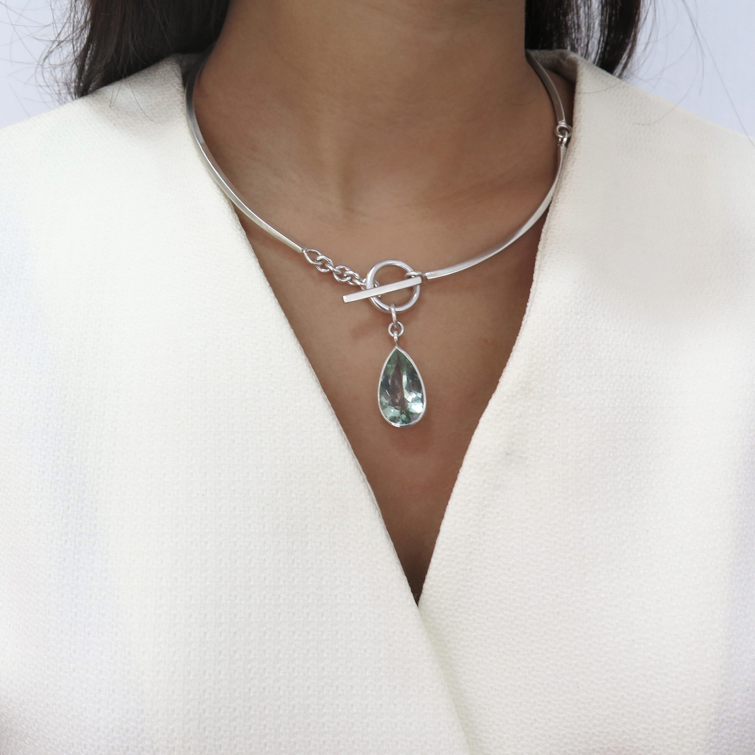 Une magnifique poire de prasiolite (quartz vert) orne ce collier original.