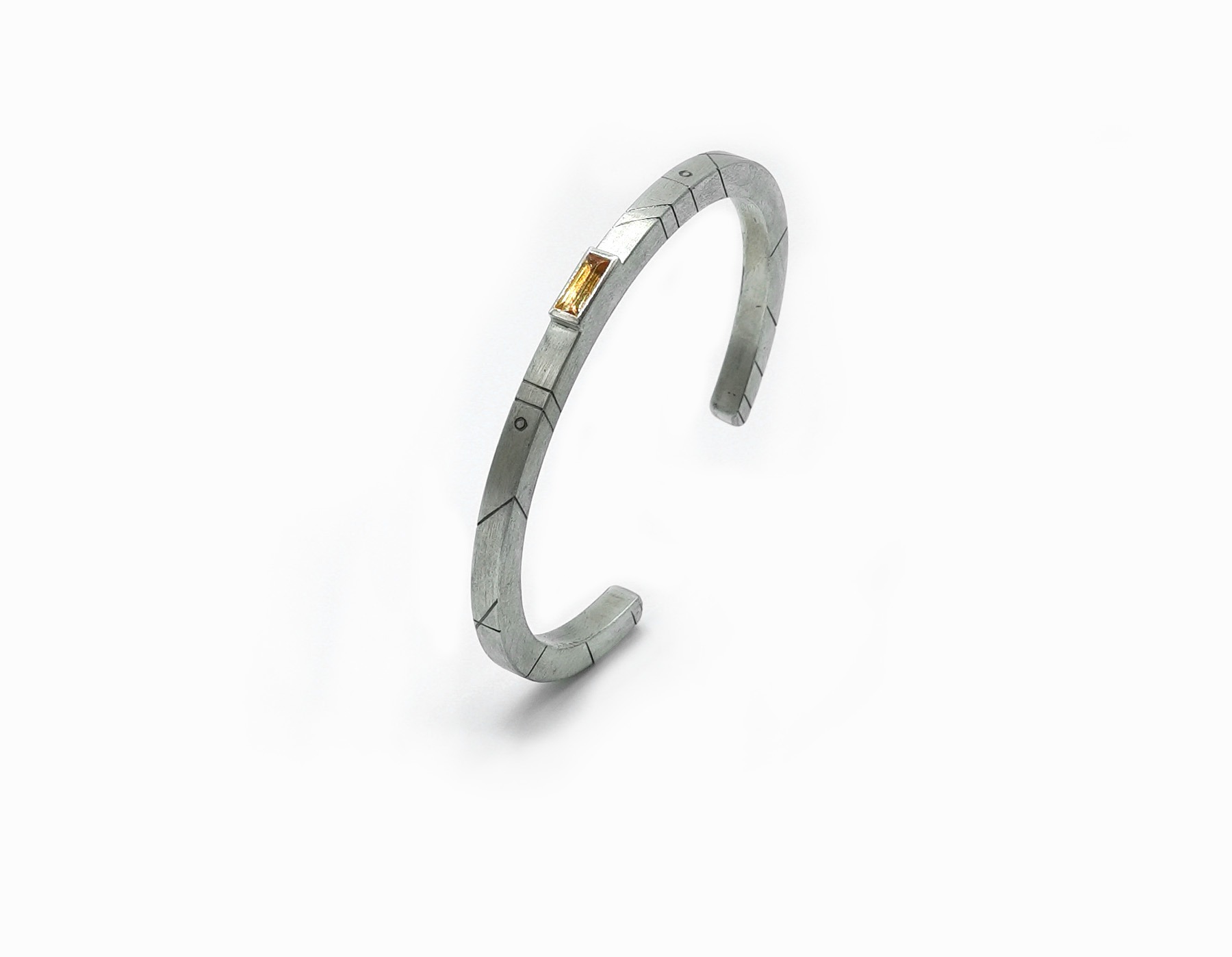 La surface de l’argent est gravée de lignes géométriques, motifs graphiques qui apporte une forme de spiritualité au bijou.