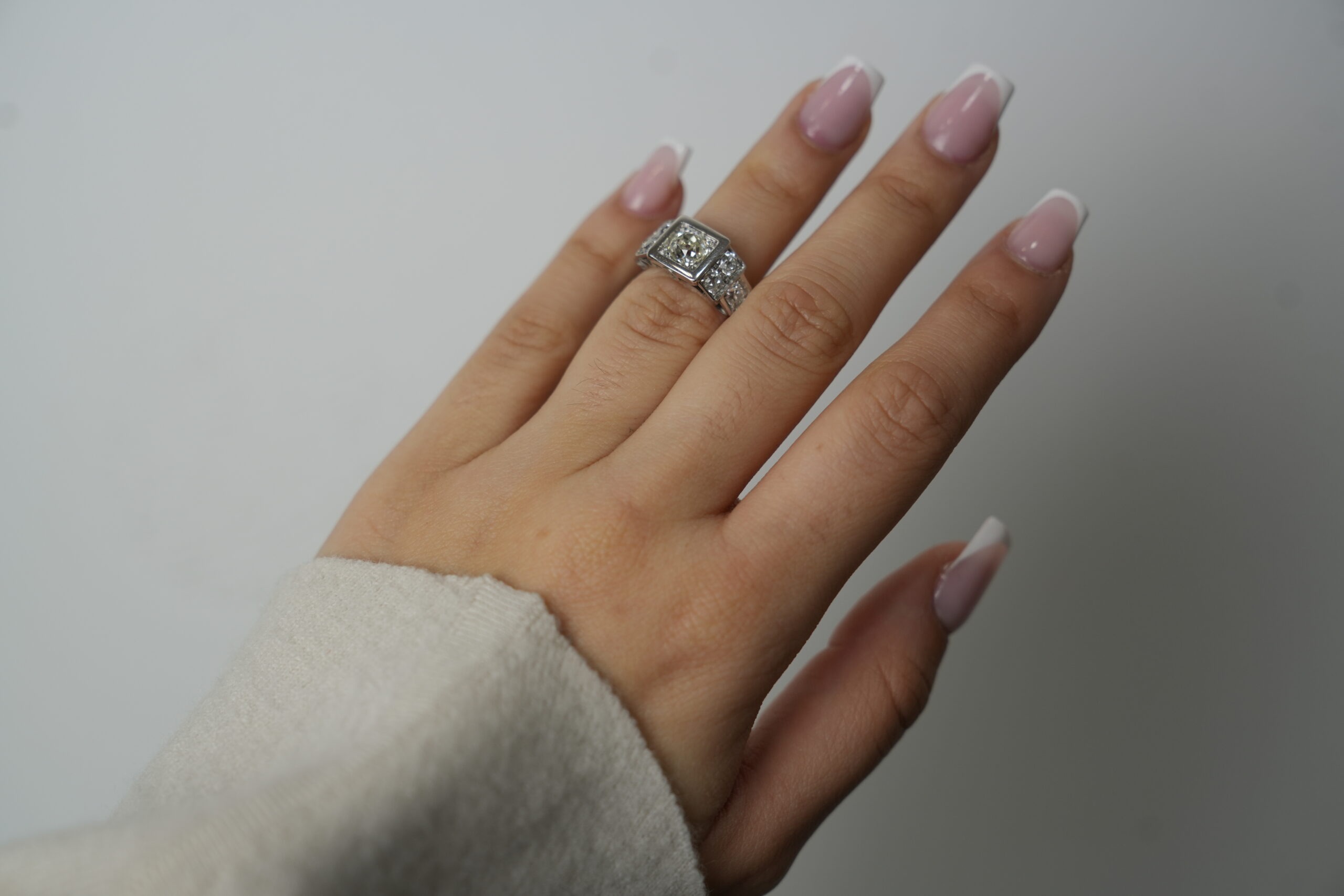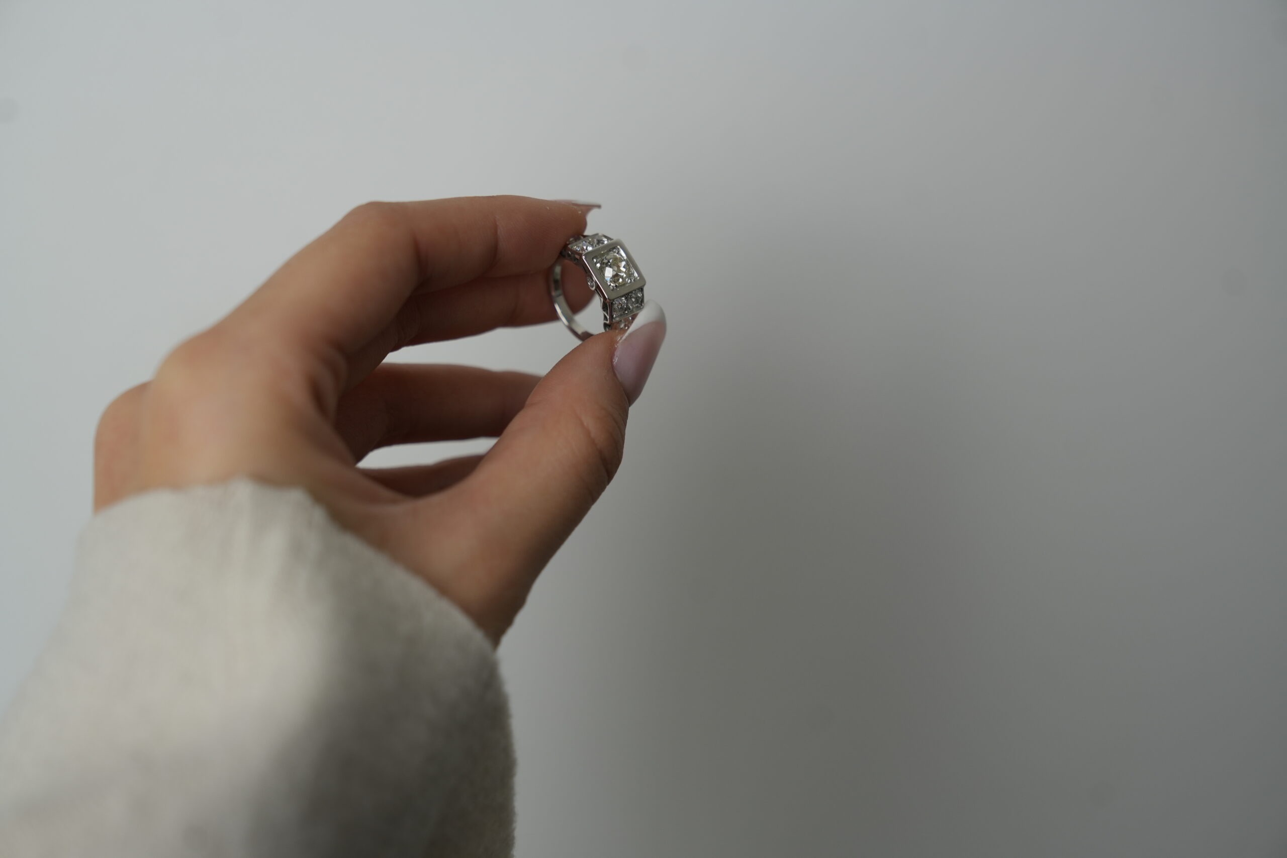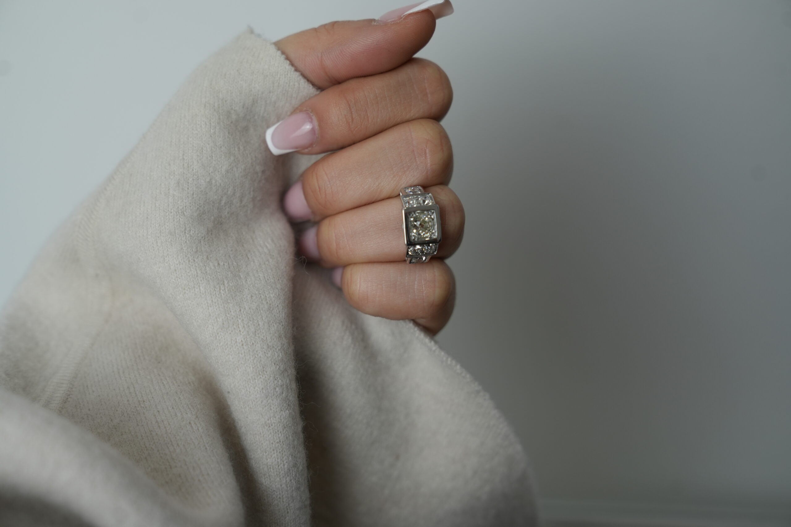Créée dans un style Art Déco qui rappelle la bague d’origine, cette création est très originale.