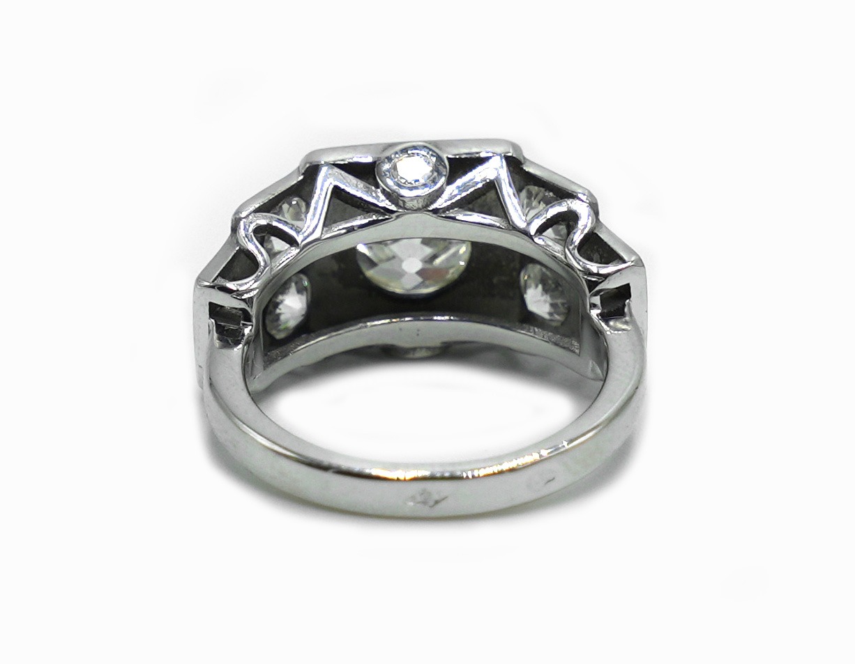 Les diamants sont mis en valeur dans une monture moderne dont le profil est ajouré de motifs géométriques.