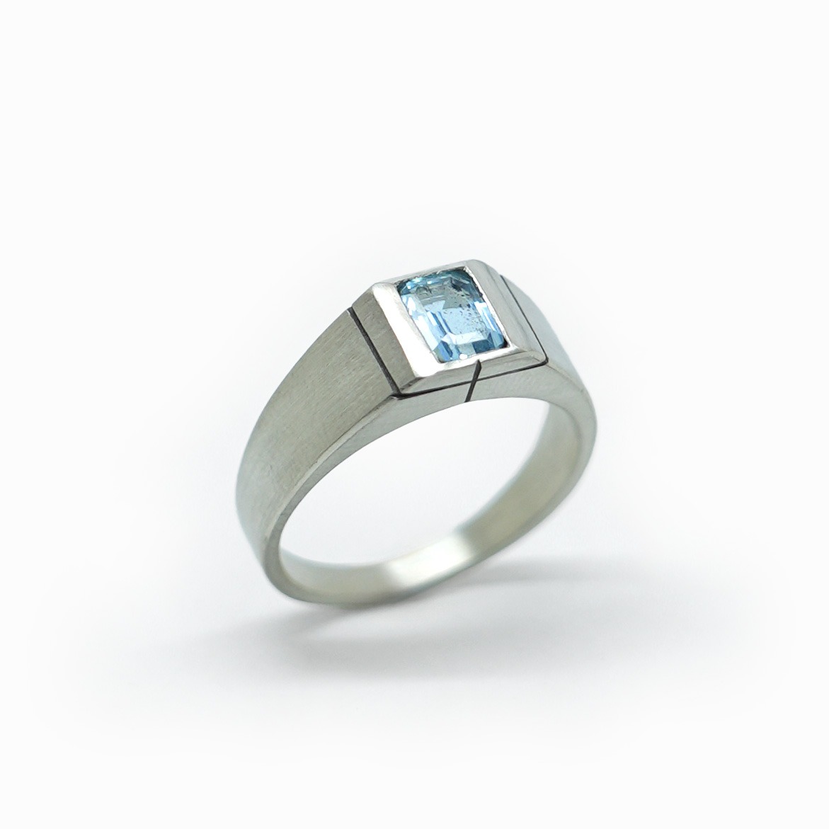 Bague sur mesure, pour homme, en argent et aigue marine.